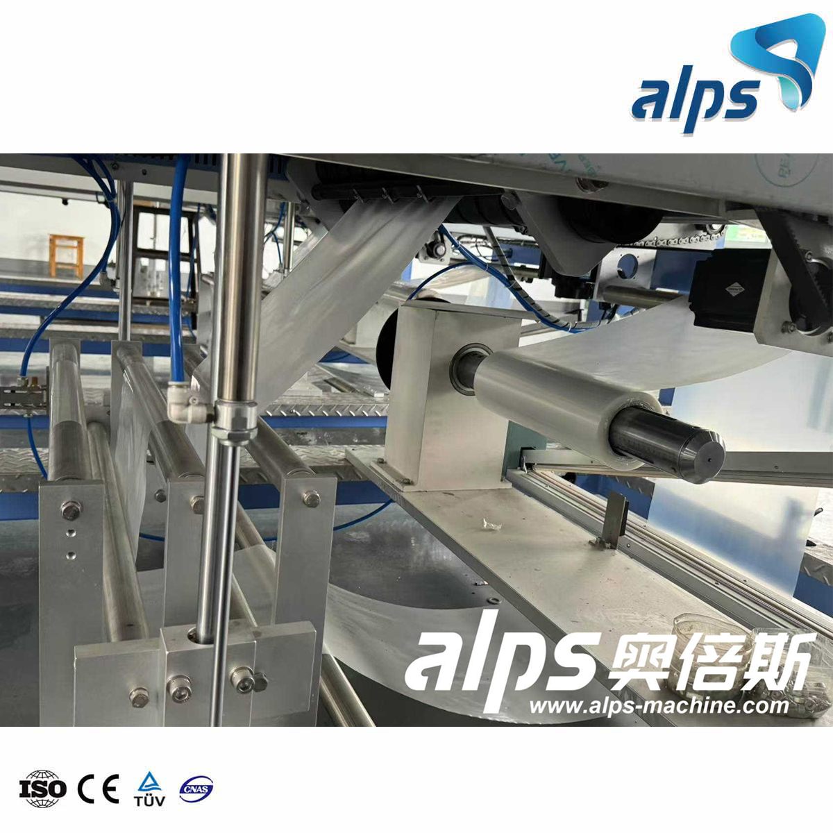 The APS fully automatic single roll film trayless shrink packaging machine is suitable for the packaging of cans, mineral water, beer, beverages and other products without bottom trays. It is used in conjunction with the PE film shrink tunnel to perfectly package the items. The entire production process adopts German advanced technology, and the main components are imported from internationally renowned companies, with stable production capacity and long service life. Through the cooperation of seven executive motors, products wrapped in plastic film are formed, and several bottles come out of the heat shrink packaging machine in a group.