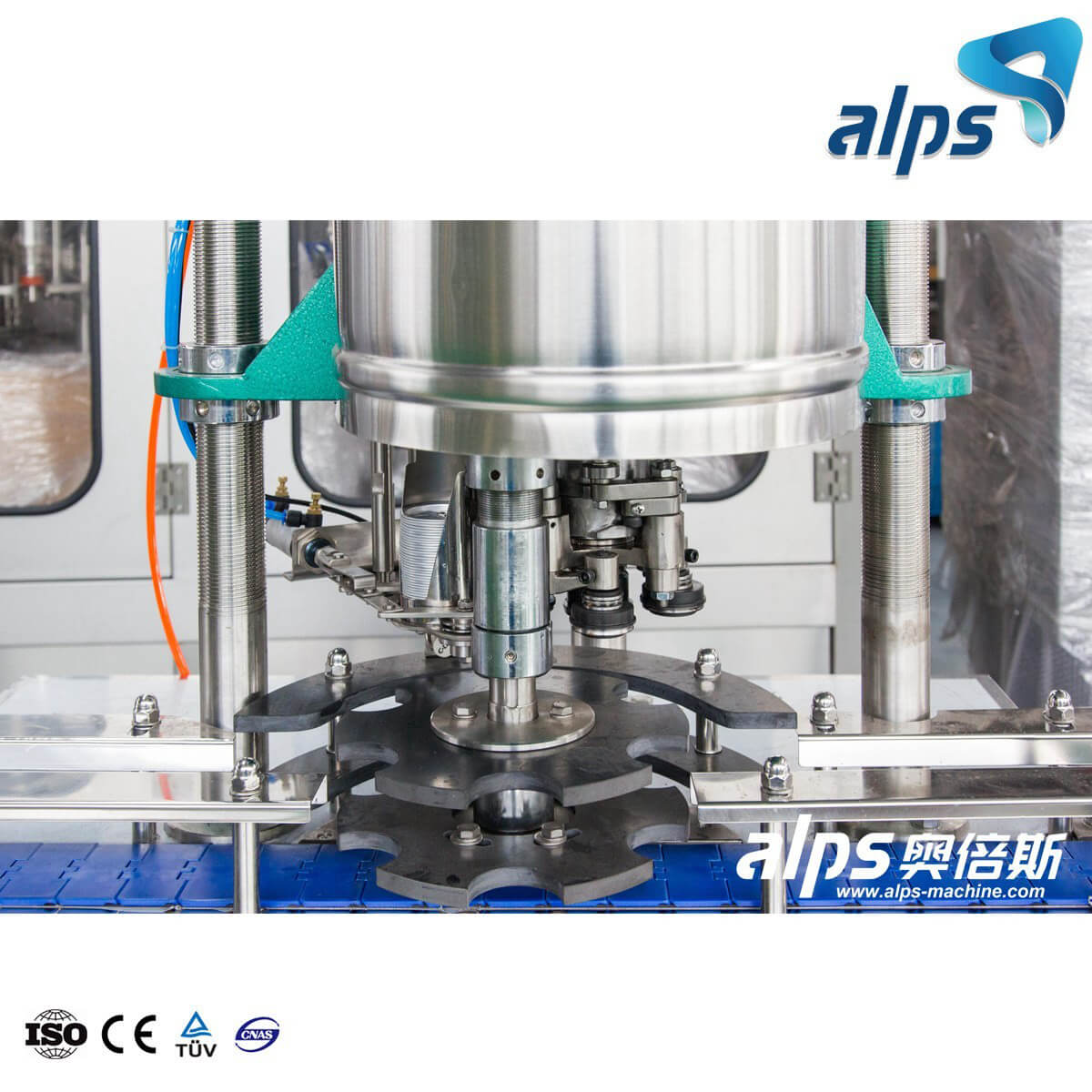>>Automatic capping machine connects with transporter and canning machine in line. Bottle is transported to canning machine by conveyor belt, after canned, passed by medium stand, transported to capping machine by conveyor belt, automatic cap-dropping equipment drops cap very well to seal cap. After sealing, conveyor belt puts out bottle and bottles are packed in a box